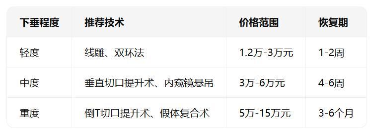 適用場(chǎng)景:輕中度下垂矯正(如雙環(huán)法、垂直切口術(shù)式),尤其適合害怕傳統(tǒng)手術(shù)疤痕的患者。